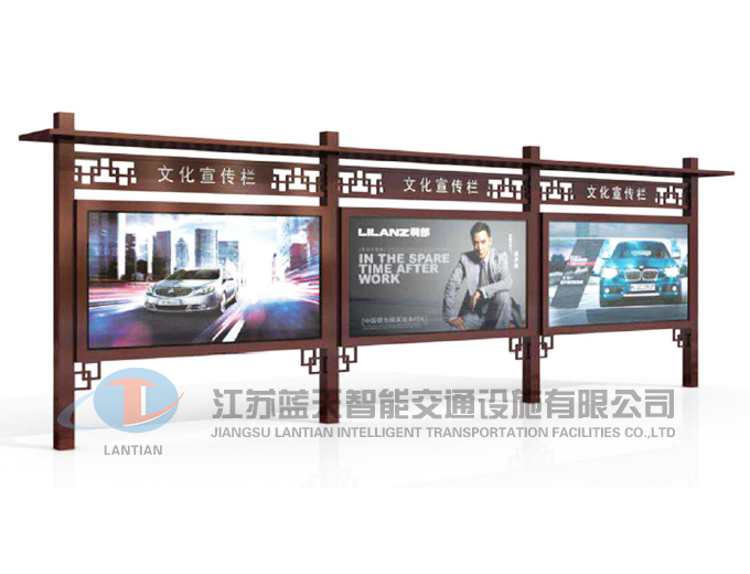 是一家生產(chǎn)宣傳欄,候車亭,公交站臺,閱報(bào)欄,指路牌,廣告垃圾箱,滾動換畫燈箱等系列產(chǎn)品廠家!產(chǎn)品多達(dá)上百種,亦可根據(jù)客戶的需求加工制作各種型號、規(guī)格的產(chǎn)品。目前已經(jīng)成功的向市場推出裝備有太陽能的各類產(chǎn)品,緊跟國家倡導(dǎo)“節(jié)能低碳”的環(huán)保政策。